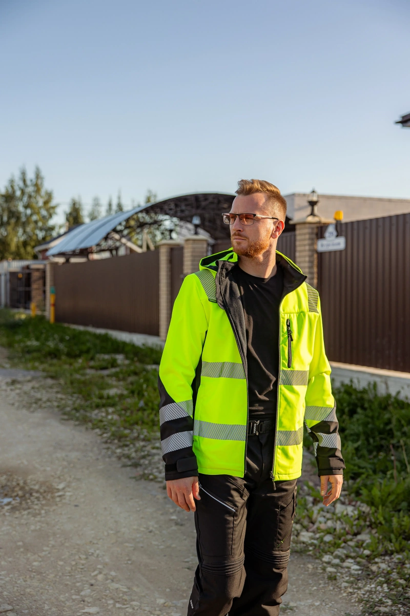 2 класс видимости (Со) Защита от дождя и ветра Съёмный капюшон Регулировка рукава 5 карманов Широкие светоотражающие полосы Воротник стойка с микрофлисом За дополнительную вентиляцию отвечают отверстия в зоне подмышек