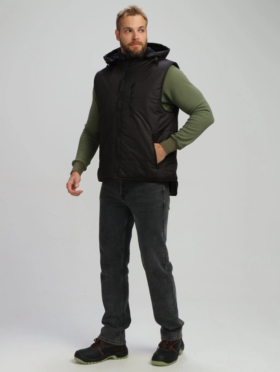 Жилет утепленный с капюшоном Респект (тк.Таслан), черный