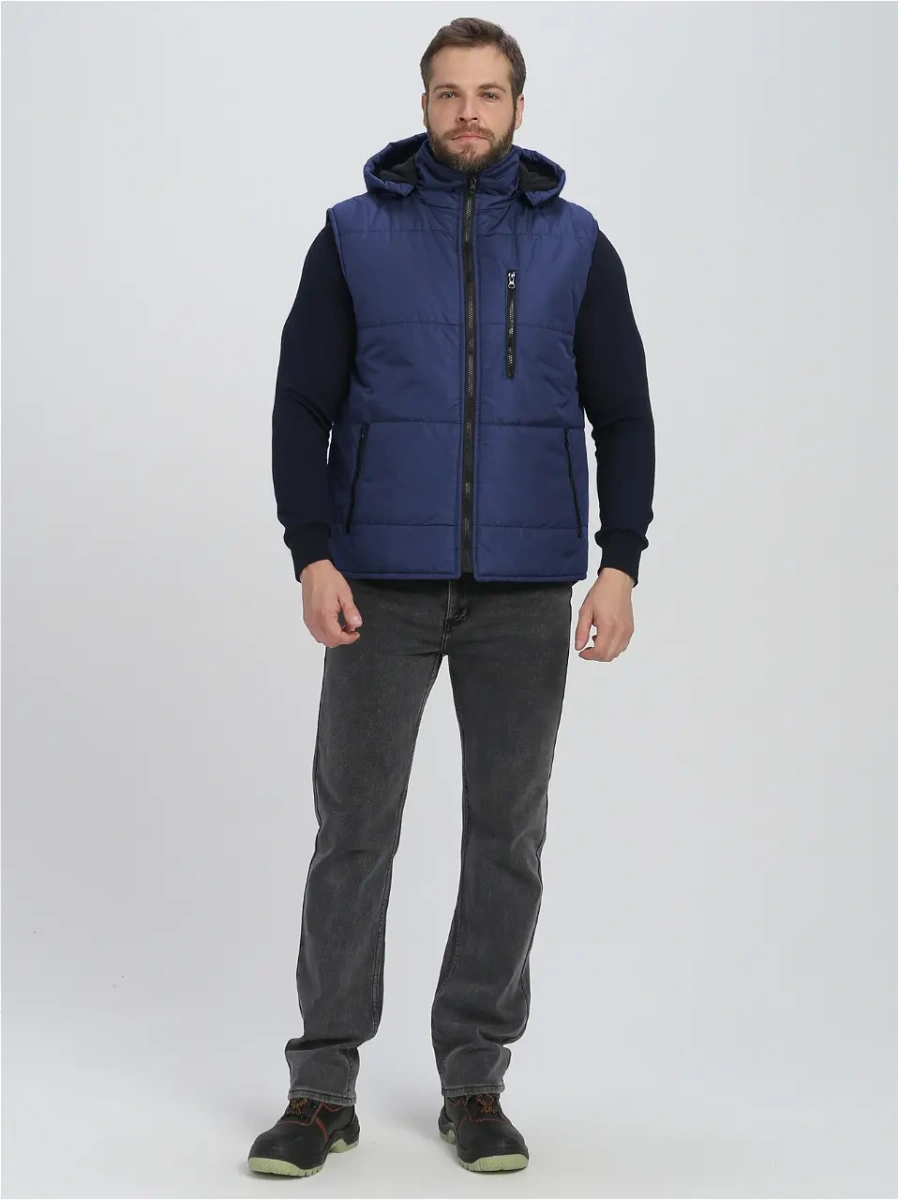 Жилет утепленный с капюшоном Резко (тк.Таслан,135), т.синий