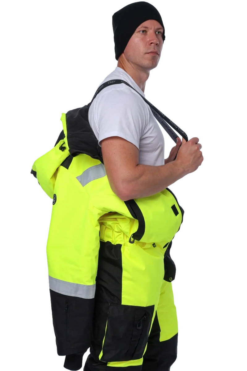 ОписаниеЗимний комбинезон Brodeks KW 505 – тёплый и прочный комбинезон для различных видов работ в холодное время года, в том числе и для промышленного альпинизма. Надёжно защищает от сильного ветра и осадков. Температура комфорта: до -20С. Отличается комфортным кроем и продуманным функционалом.