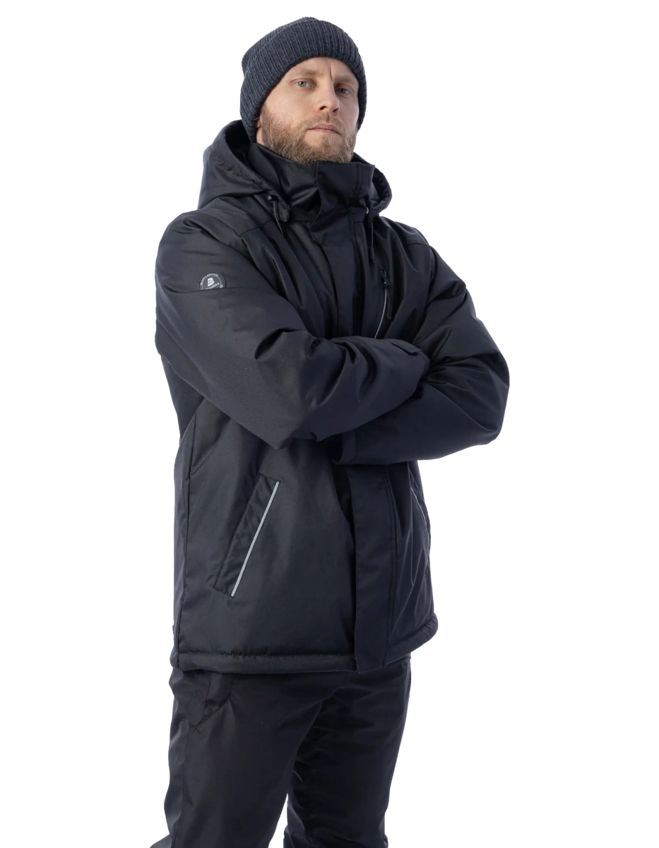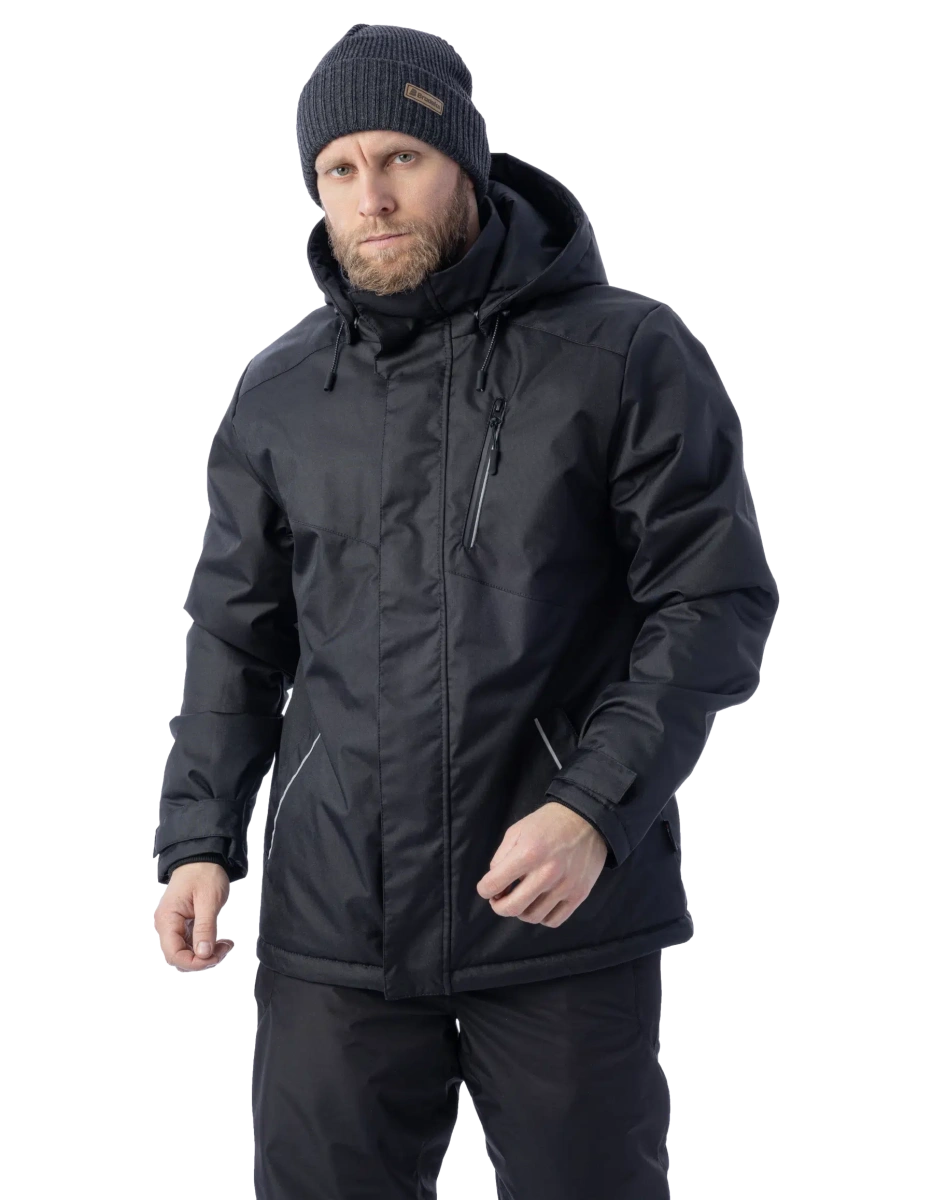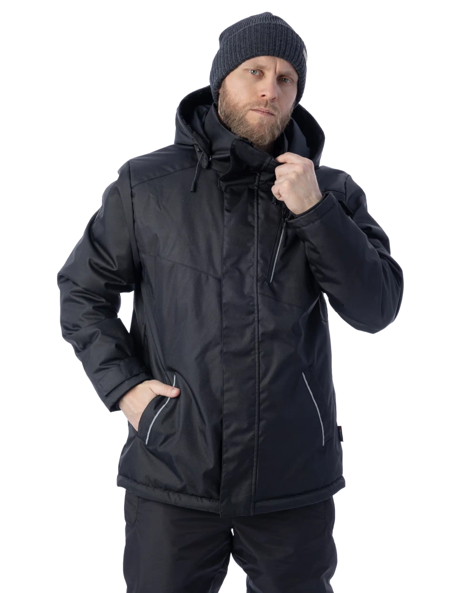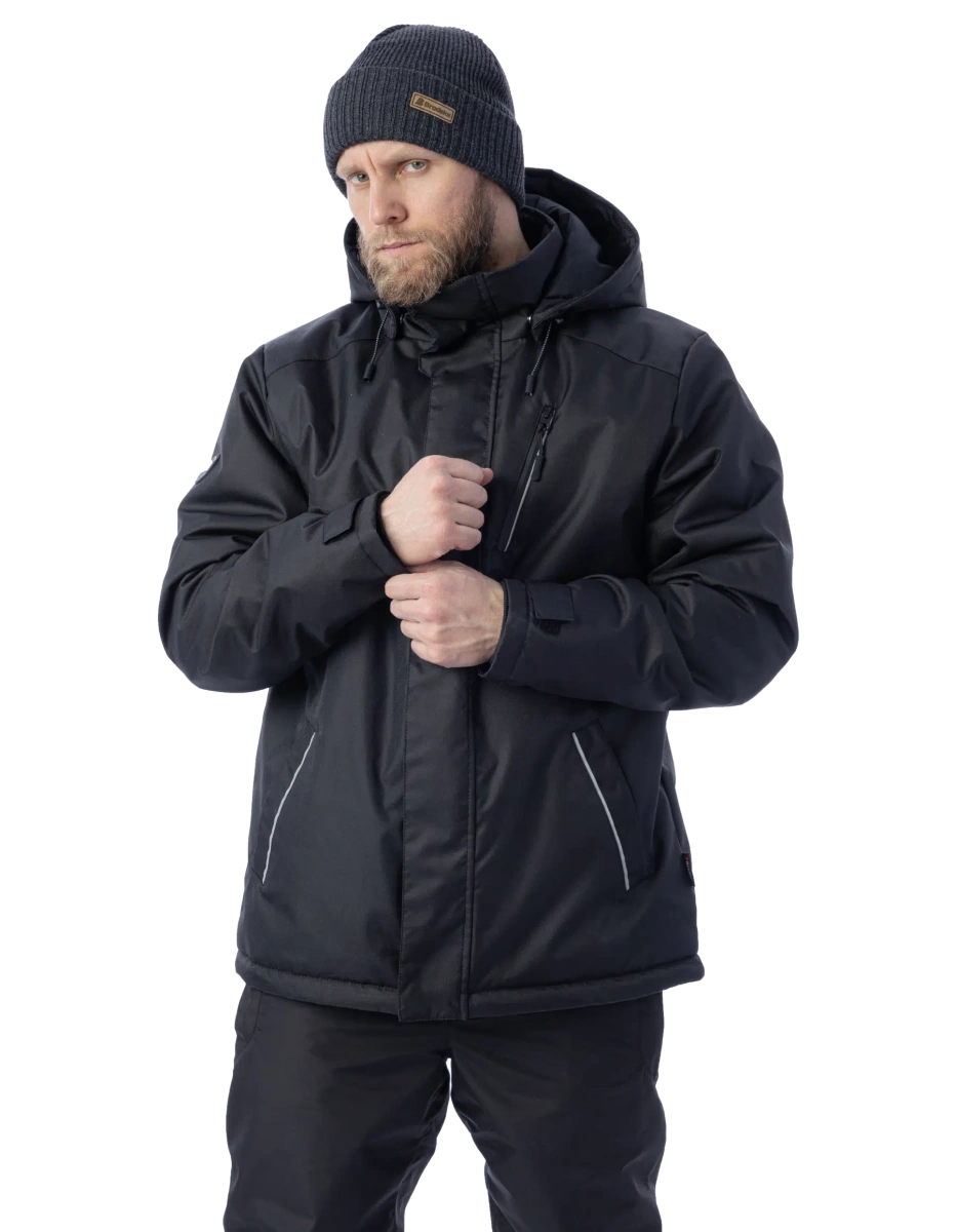 Тёплая и лёгкая Утепленный капюшон отстегивается, регулируется, подходит для ношения с каской На основной молнии есть два замка - куртка расстегивается снизу и сверху Молния защищена ветрозащитной планкой Есть 3 наружных кармана и 2 внутренних Внутри куртки есть большой карман из сетки для планшета или документов 150 граммов утеплителя - куртка подойдет для лёгких морозов Светоотражающие вставки
