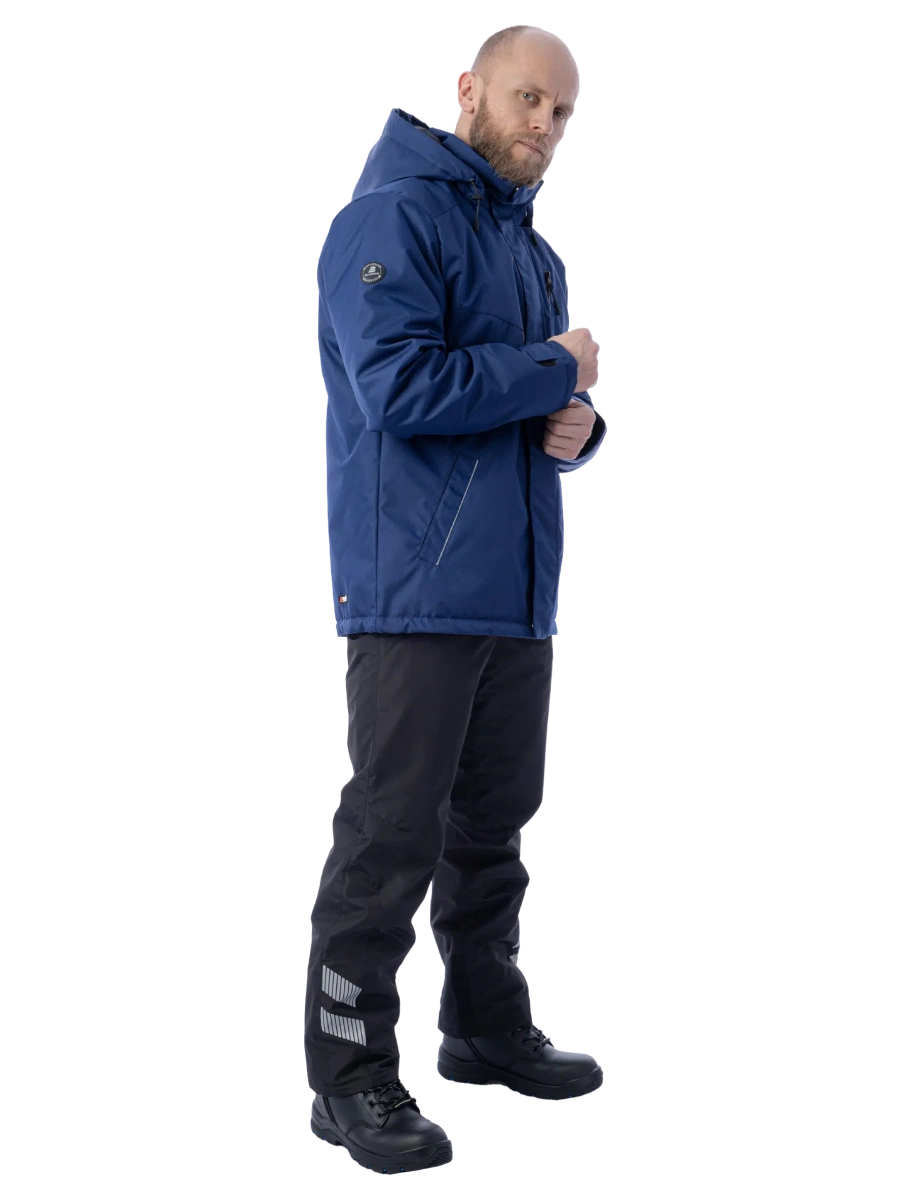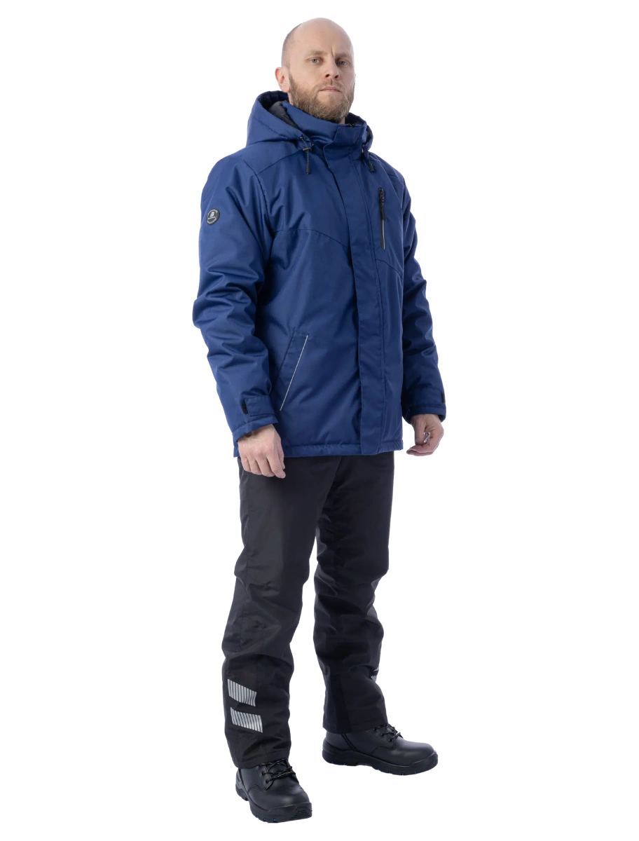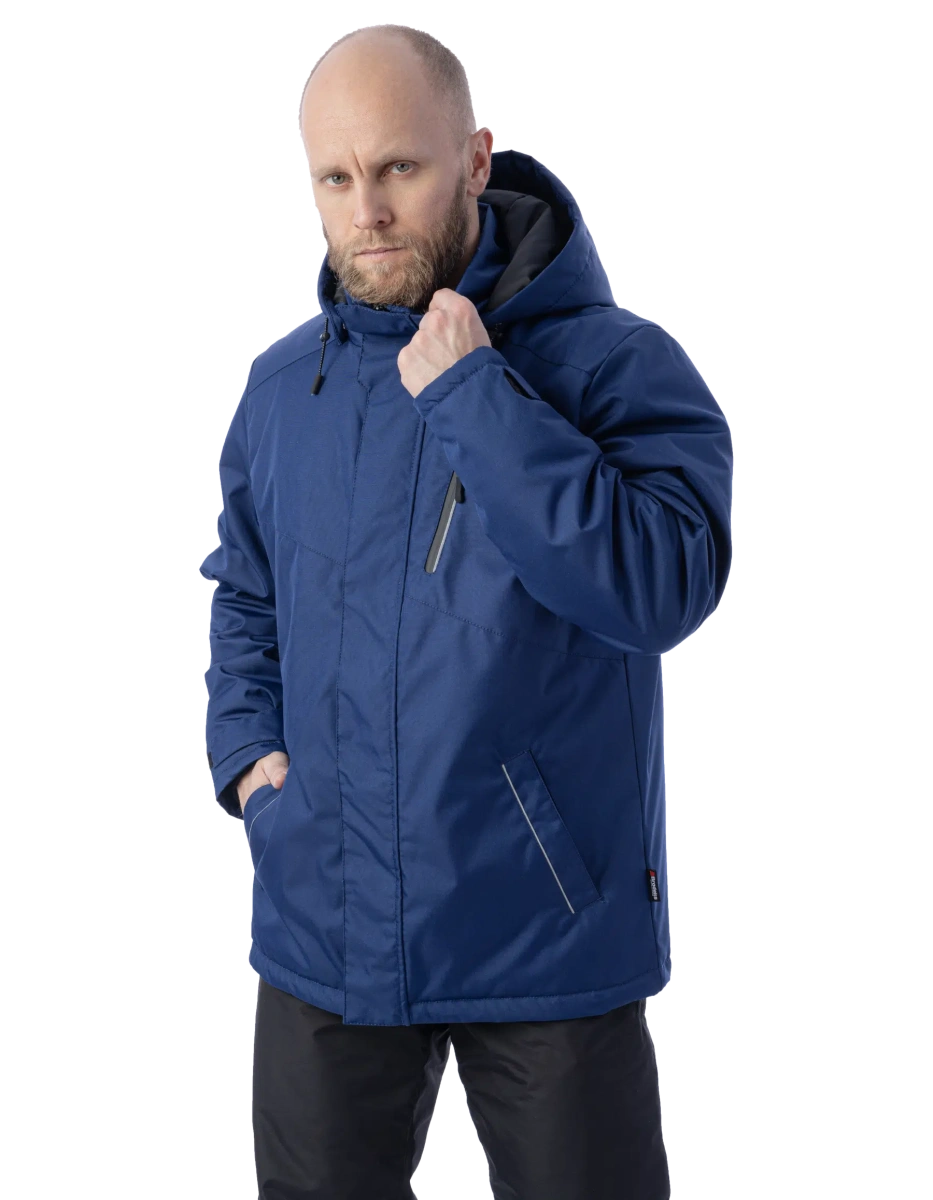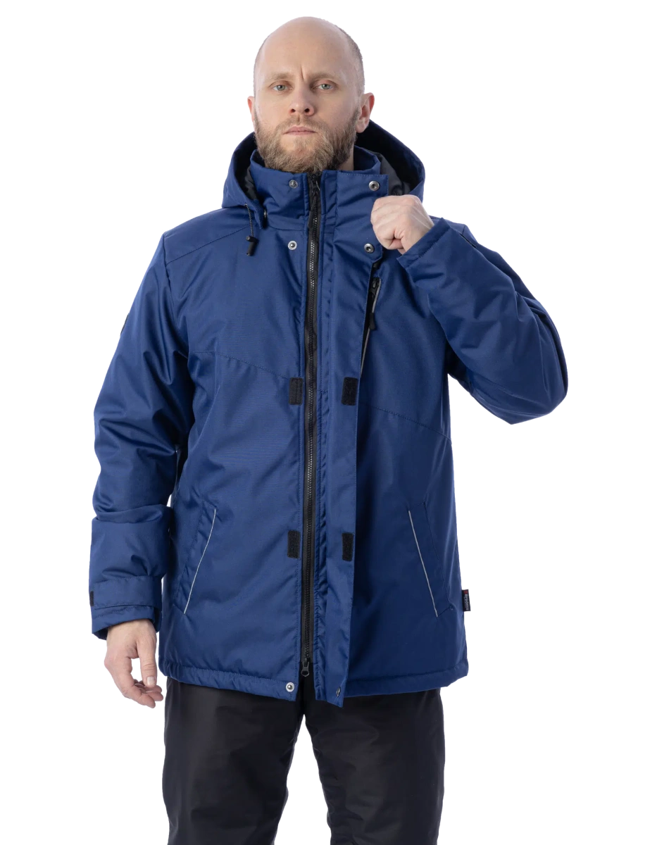 Тёплая и лёгкая Утепленный капюшон отстегивается, регулируется, подходит для ношения с каской На основной молнии есть два замка - куртка расстегивается снизу и сверху Молния защищена ветрозащитной планкой Есть 3 наружных кармана и 2 внутренних Внутри куртки есть большой карман из сетки для планшета или документов 150 граммов утеплителя - куртка подойдет для лёгких морозов Светоотражающие вставки