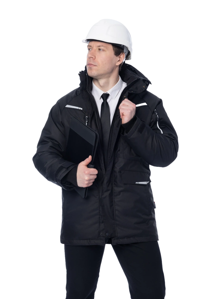 Ткань верха: Jaguar Arctic (Состав: 75% полиэстер, 25% полиуретан PU Плотность: 215 г/м2 Мембрана: 10000/10000 Утеплитель: ThermoShild (100% полиэстэр) 360 г/м2 Ткань Jaguar Arctic повышенной износостойкости и плотности, устойчива к различным видам загрязнений. Мембранный материал имеет ветро-влагозащитные свойства. Во время активности отводит пар наружу. ThermoShild - инновационный утеплитель, созданный для современной рабочей одежды. Благодаря уникальной структуре волокон он сочетает в себе превосходную защиту от холода, исключительный комфорт и долговечность. Разработан с учетом потребностей специалистов различных профессий, работающих в сложных погодных условиях. -