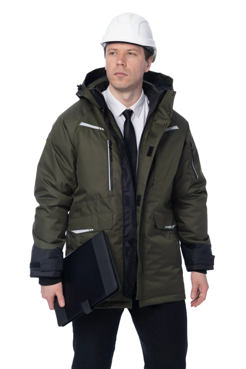 Ткань верха: Jaguar Arctic (Состав: 75% полиэстер, 25% полиуретан PU Плотность: 215 г/м2 Мембрана: 10000/10000 Утеплитель: ThermoShild (100% полиэстэр) 360 г/м2 Ткань Jaguar Arctic повышенной износостойкости и плотности, устойчива к различным видам загрязнений. Мембранный материал имеет ветро-влагозащитные свойства. Во время активности отводит пар наружу. ThermoShild - инновационный утеплитель, созданный для современной рабочей одежды. Благодаря уникальной структуре волокон он сочетает в себе превосходную защиту от холода, исключительный комфорт и долговечность. Разработан с учетом потребностей специалистов различных профессий, работающих в сложных погодных условиях. -