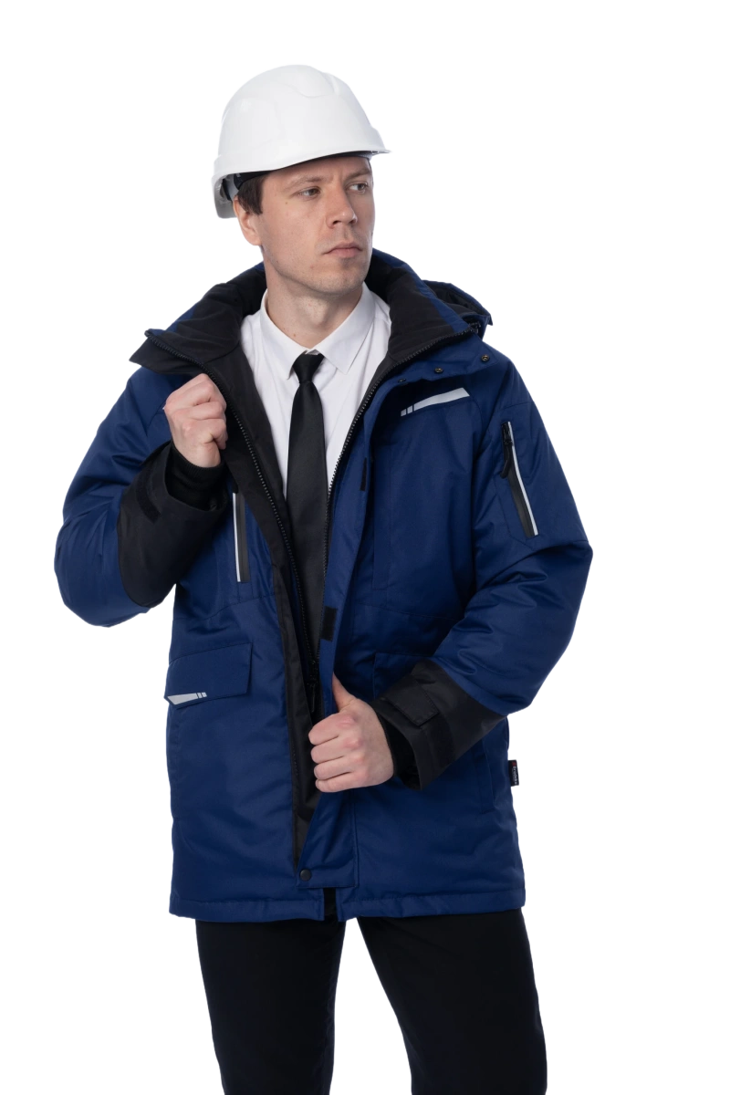 Ткань верха: Jaguar Arctic (Состав: 75% полиэстер, 25% полиуретан PU Плотность: 215 г/м2 Мембрана: 10000/10000 Утеплитель: ThermoShild (100% полиэстэр) 360 г/м2 Ткань Jaguar Arctic повышенной износостойкости и плотности, устойчива к различным видам загрязнений. Мембранный материал имеет ветро-влагозащитные свойства. Во время активности отводит пар наружу. ThermoShild - инновационный утеплитель, созданный для современной рабочей одежды. Благодаря уникальной структуре волокон он сочетает в себе превосходную защиту от холода, исключительный комфорт и долговечность. Разработан с учетом потребностей специалистов различных профессий, работающих в сложных погодных условиях. -