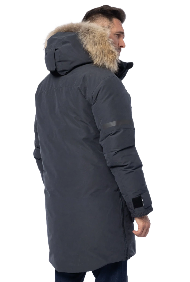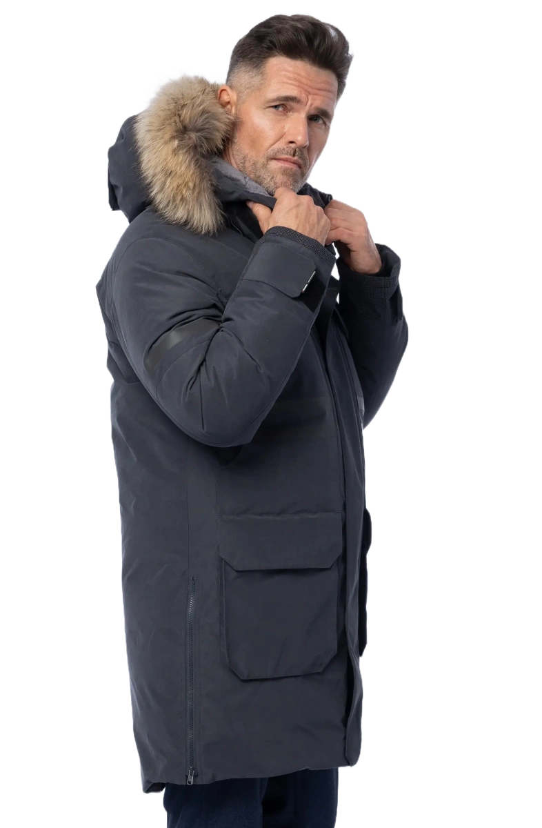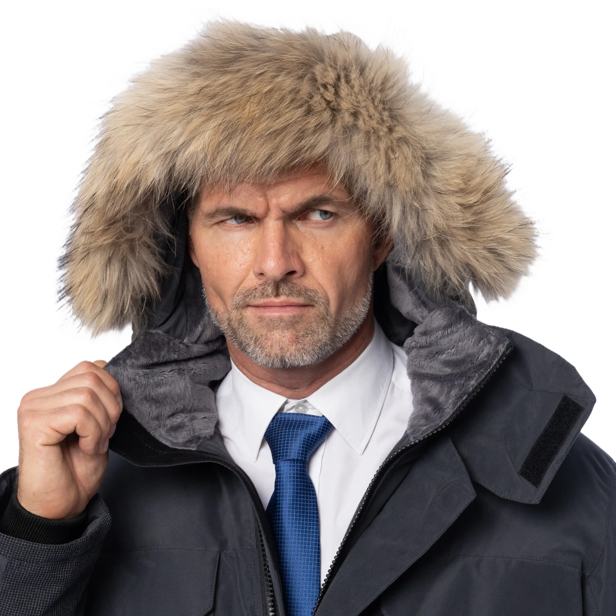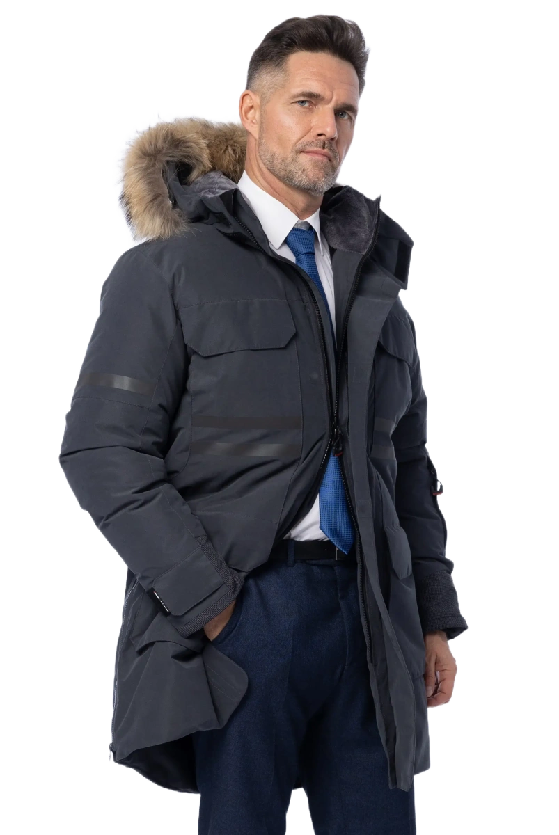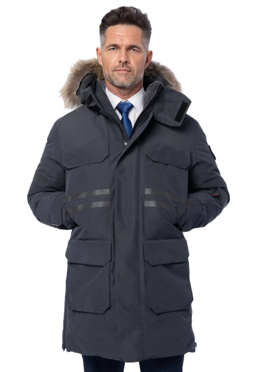 ОписаниеПремиальная парка Brodeks KW233 - как персональная экосистема комфорта, создана для тех, кто ценит совершенство в каждой детали и требует максимума от своей экипировки, будь то улицы мегаполиса или просторы северных экспедиций. Обеспечивает комфортное пребывание на улице до -42°C. В основе парки — элитный гусиный пух (85/15) с высоким показателем Fill Power 650. Он создает максимальную теплоизоляцию при минимальном весе. Снаружи — высокотехнологичная ткань SnowShell . Особое плетение “твилл-добби” из полиэстера и полиамида придает ткани благородную матовую фактуру и исключительную прочность. При этом она бесшумна на морозе и приятна на ощупь. А мощная мембрана 10000/10000 блокирует ветер и мокрый снег, но позволяет телу дышать. Фурнитура: Надежность, возведенная в абсолют Мы использовали легендарные японские молнии YKK. Двухзамковая центральная молния «тракторного» типа гарантирует безотказную работу в любых условиях. Ветрозащитная планка и карманы оснащены магнитами. Больше никаких неудобных кнопок на морозе — планка застегивается сама, одним легким движением. Нижняя часть рукавов, зона повышенного износа, усилена вставками из ткани «Кевлар» — материала, известного своей феноменальной стойкостью к истиранию и разрывам. Это гарантия долговечности парки. Продуманная до мелочей эргономика Система карманов: 6 наружных карманов на магнитах, потайной карман для планшета под центральной планкой, карман для пропуска на рукаве, а также внутренние карманы для документов и гаджетов. Адаптивность: Молнии в боковых швах предоставляют дополнительную свободу движения и делают комфортным вождение автомобиля. Внутренняя утяжка на талии позволяет идеально подогнать силуэт и заблокировать доступ холодному воздуху. Система «свободные руки»: Внутренние лямки позволяют снять парку в помещении (например, в торговом центре) и носить ее за спиной, как рюкзак, оставляя руки свободными. Защита от снега: Снегозащитная юбка с силиконовой полосой плотно прилегает к телу, предотвращая попадание снега и ветра снизу. Капюшон: Роскошная съемная опушка выполнена из натурального меха енота, а внутренняя часть капюшона отделана густым и мягким искусственным мехом премиум класса. Двойная система регулировки по объему и овалу лица позволяет идеально настроить капюшон. Элементы высокой видимости: Мы интегрировали в дизайн элементы высокой видимости - полосы темного цвета. Днем они являются органичной частью образа в цвете «Серый графит», а в сумерках и в непогоду отражают свет, повышая заметность