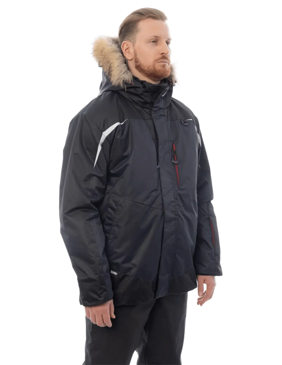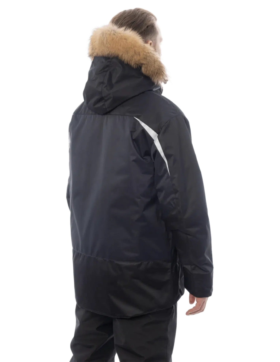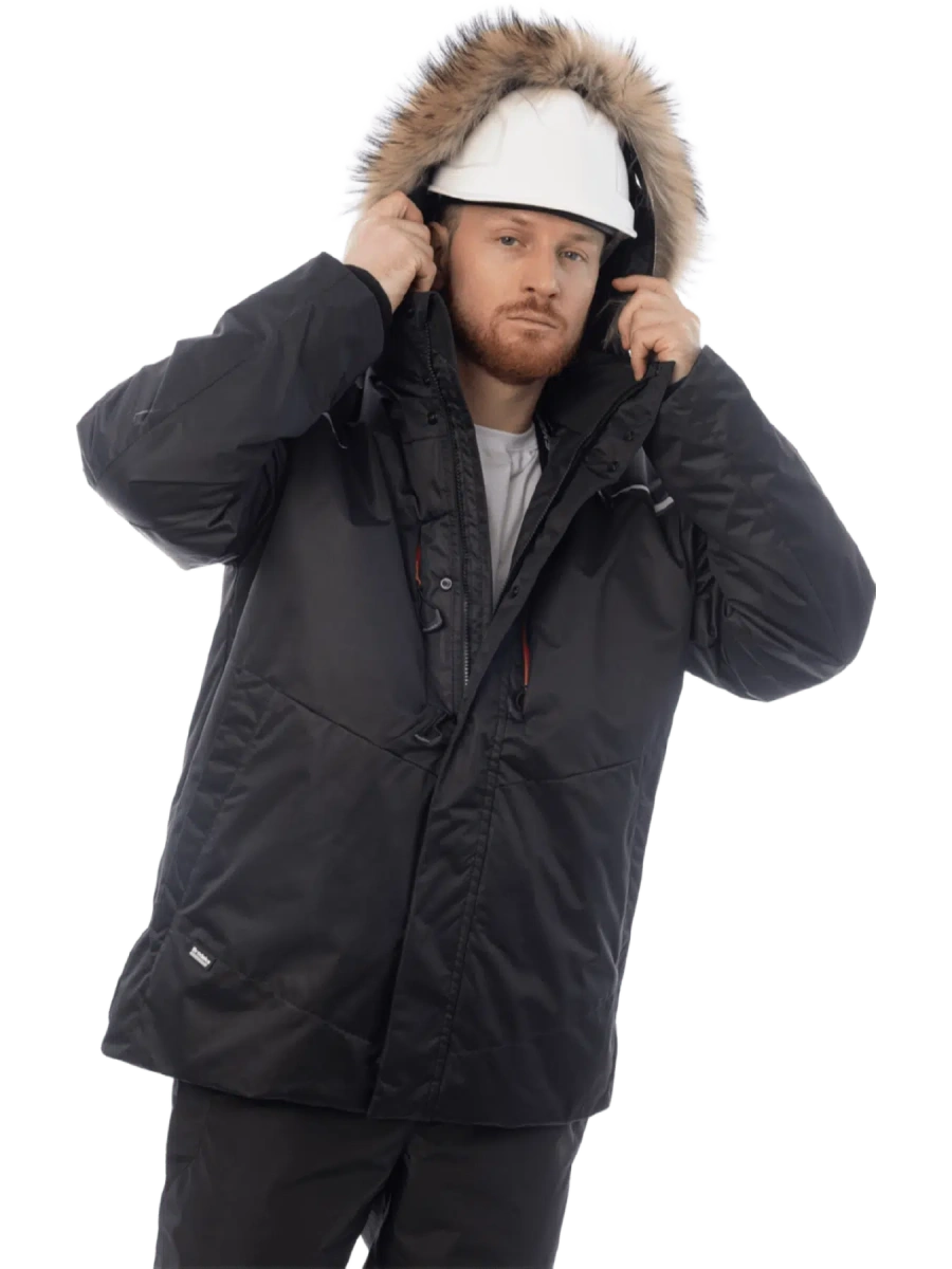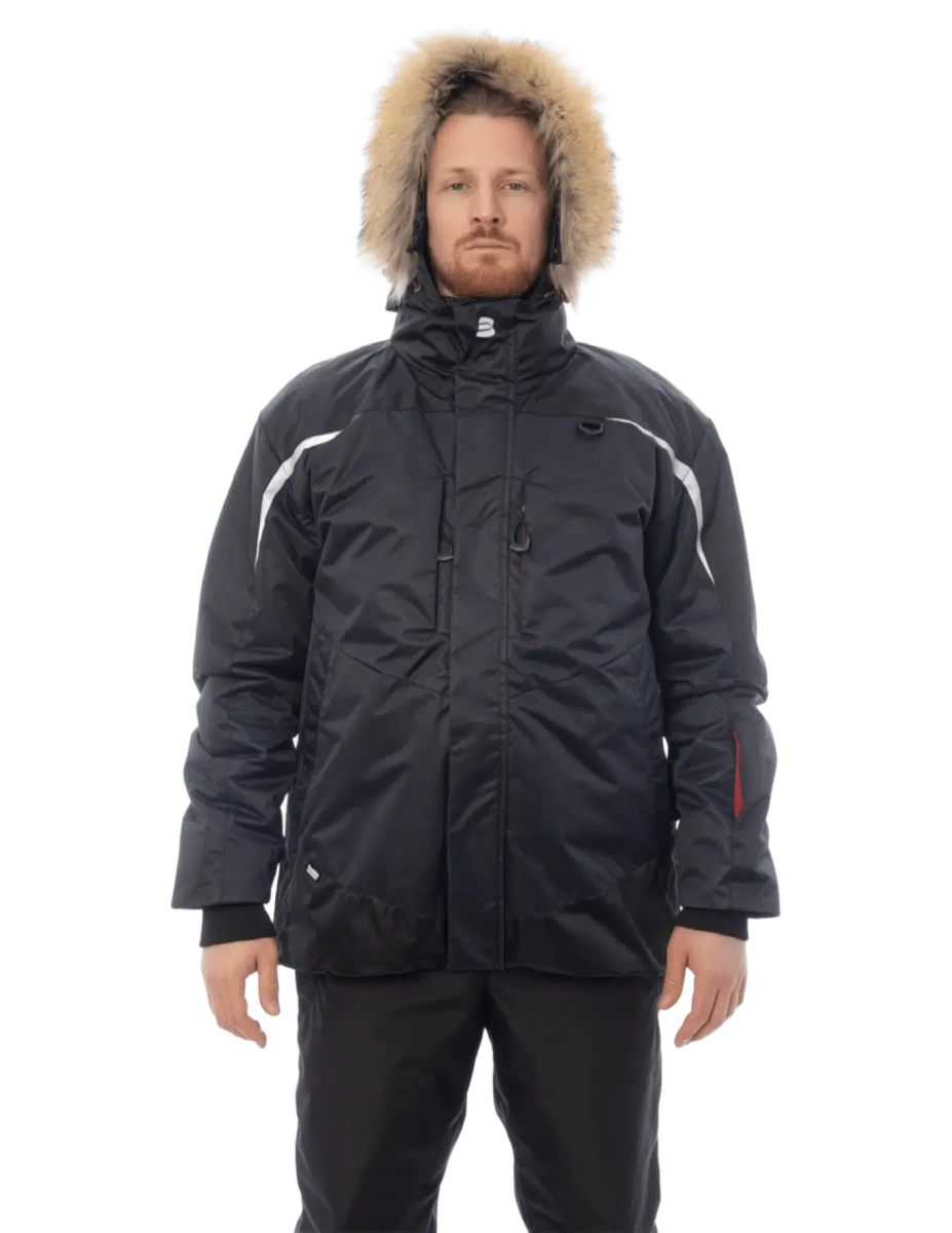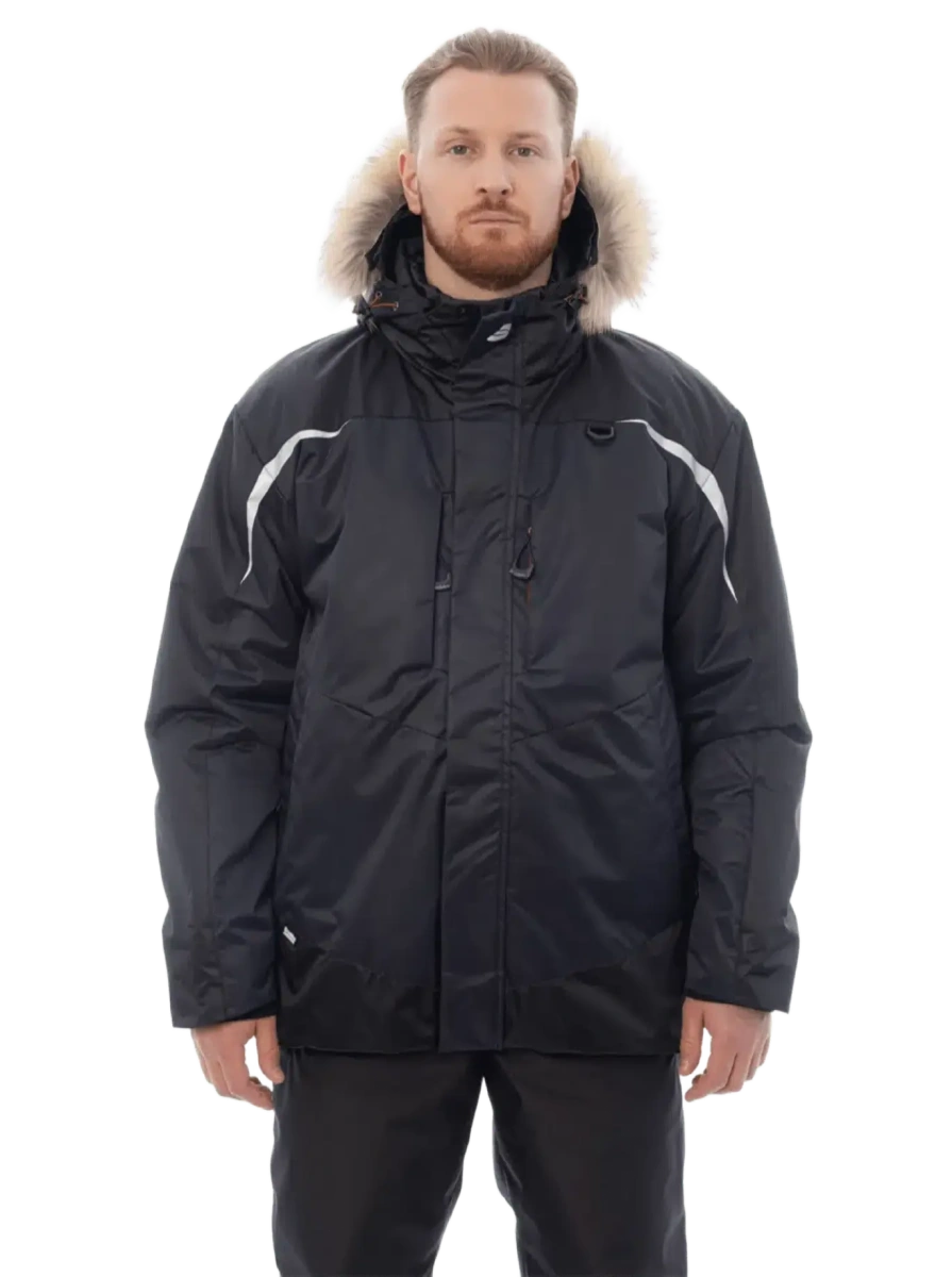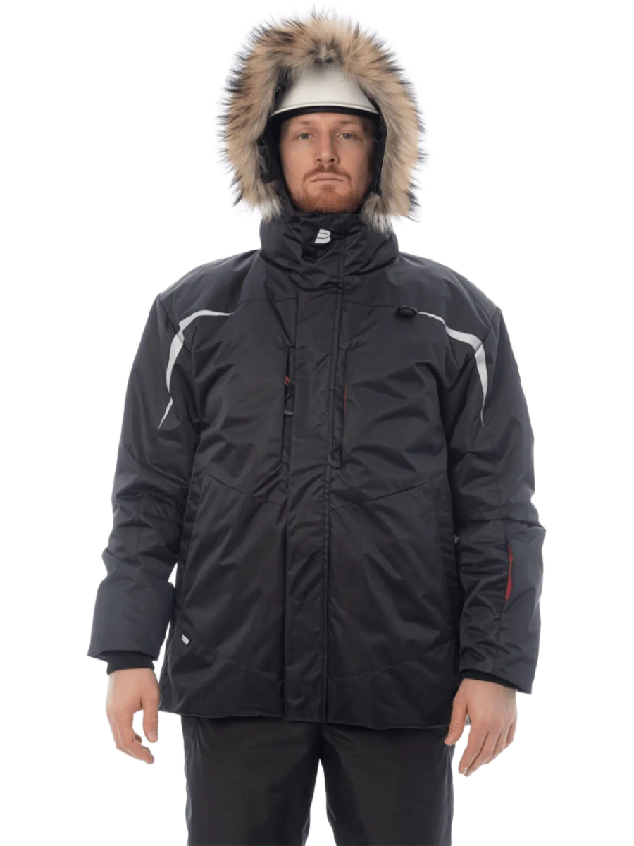 Подходит для III климатического пояса Температурный режим: до -18С Капюшон съёмный, подходит для ношения с каской Ветрозащитная юбка Внутренняя эластичная лямка – в помещении можно снимать куртку и носить как рюкзак 8 карманов: 2 для рук, 2 нагрудных, 1 на рукаве, 3 внутренних