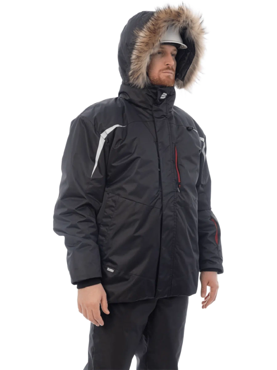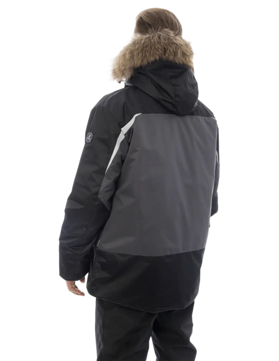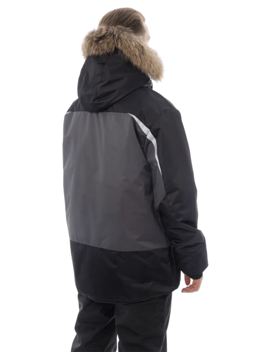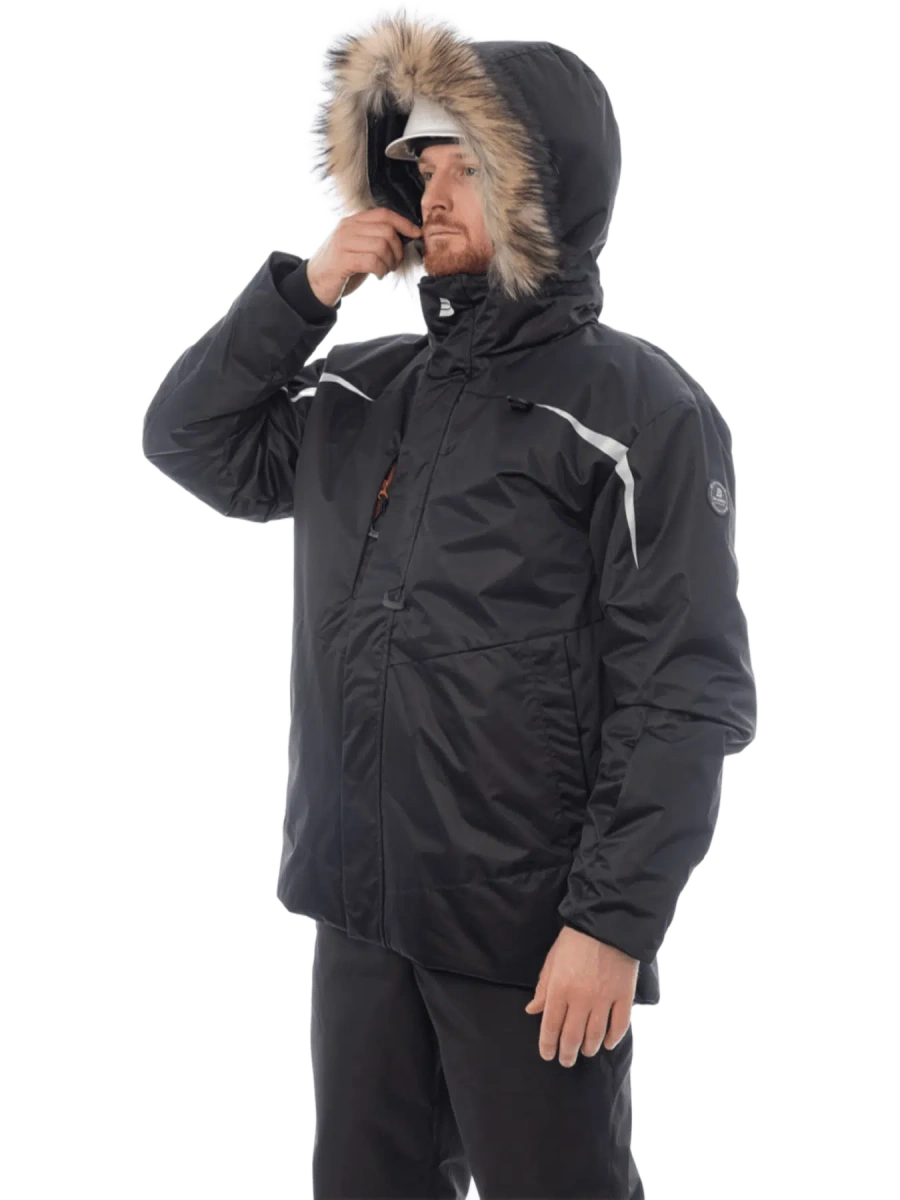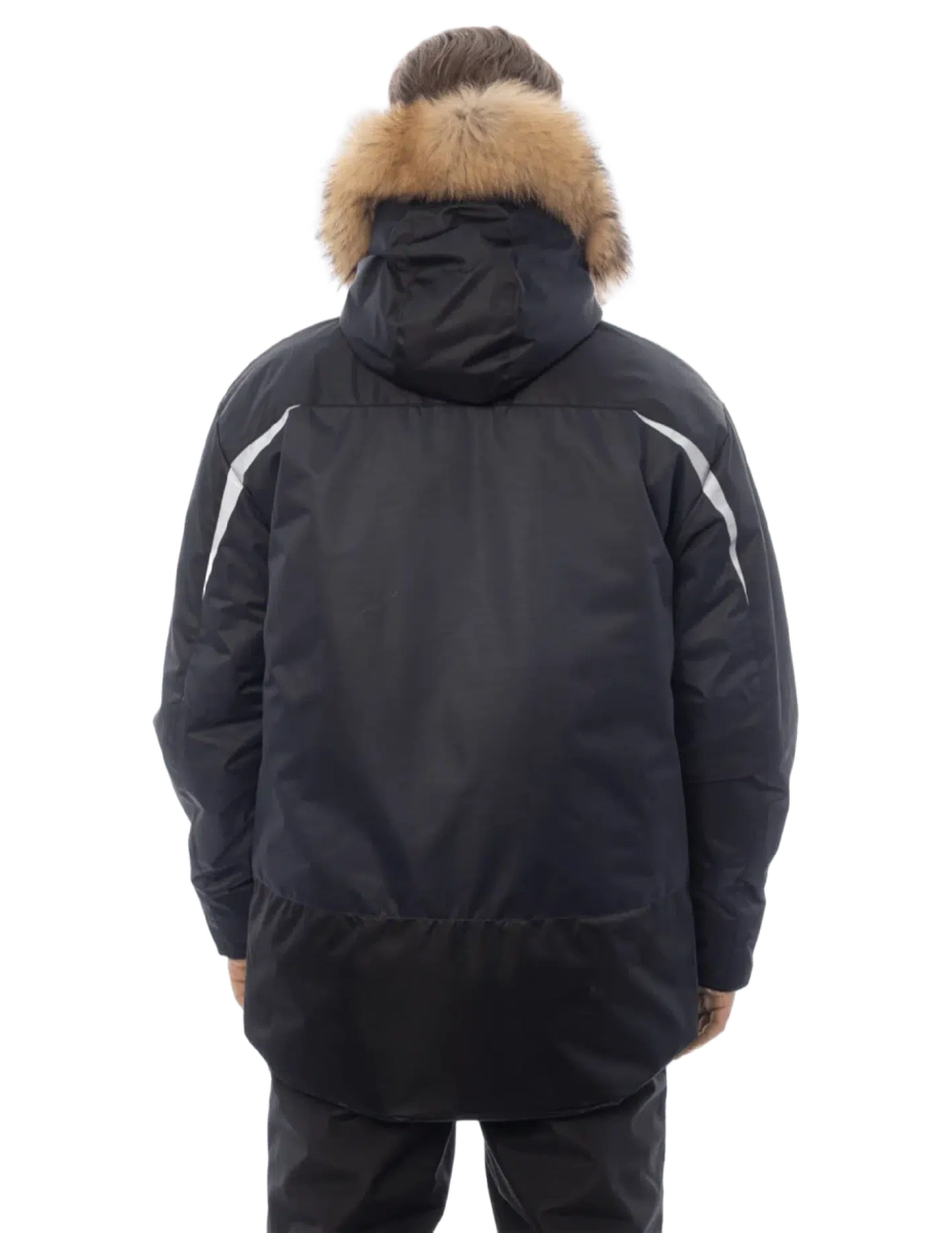 Подходит для III климатического пояса Температурный режим: до -18С Капюшон съёмный, подходит для ношения с каской Ветрозащитная юбка Внутренняя эластичная лямка – в помещении можно снимать куртку и носить как рюкзак 8 карманов: 2 для рук, 2 нагрудных, 1 на рукаве, 3 внутренних
