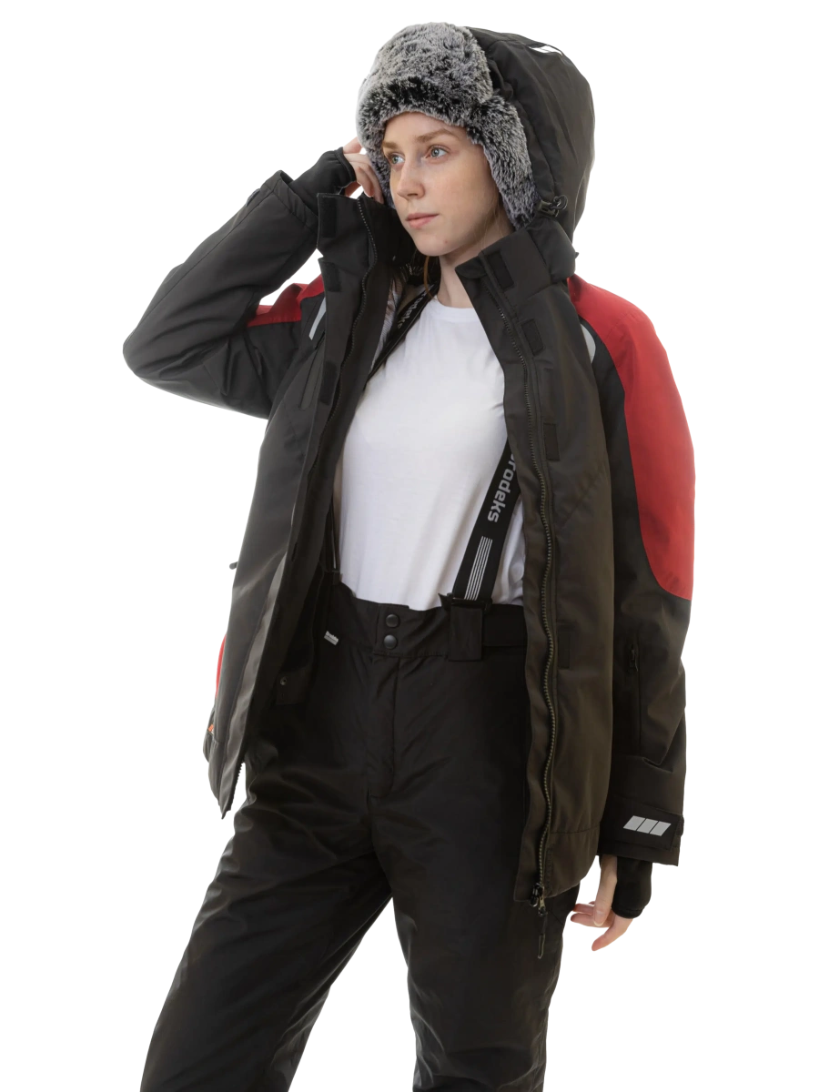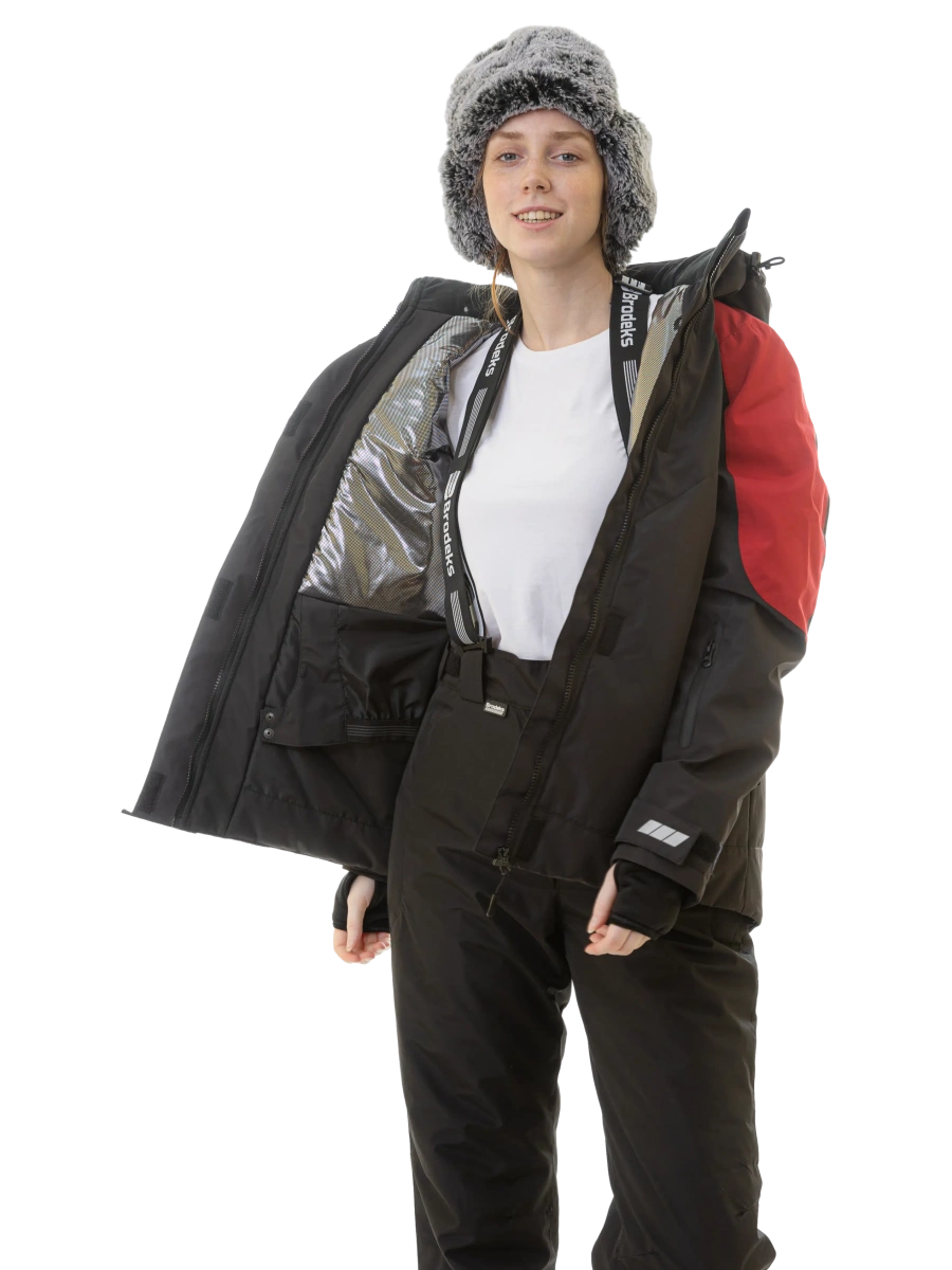 Ткань верха: трёхслойная мембранная ткань с водоотталкивающей пропиткой (влагонепроницаемость 10000 мм; паропроницаемость 10000 г/м2/24 часа) Утеплитель: Shelter Micro 240 г -