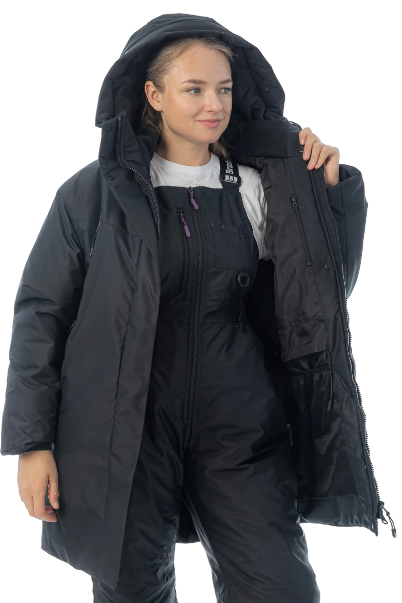 ОписаниеЖенская куртка Brodeks KW 258 - ультра-тёплая куртка для работы в северных регионах. Морозостойкая мембранная ткань, много утеплителя, а также длинный крой и глубокий капюшон делают эту куртку лучшим выбором для повседневной носки при низких температурах до -40 С, в сильный снегопад и ветер. Изделие сопровождается сертификатом 3 и 4 класса и рекомендовано для работы в IV и Особом климатических поясах.